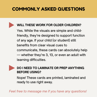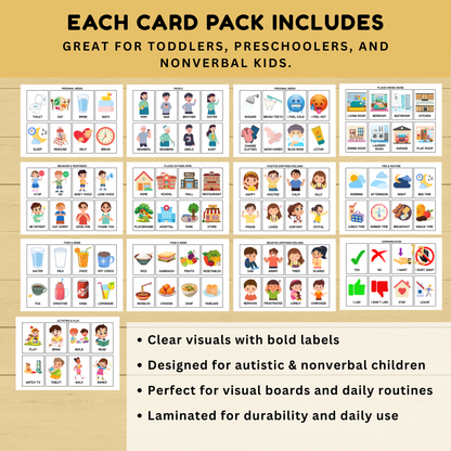 These ready-to-use laminated communication cards support children with autism, speech delay, or nonverbal needs in expressing emotions, needs, and daily routines.
