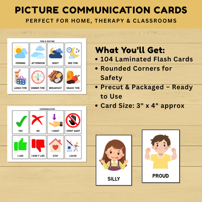 104 Laminated Communication Cards for Toddlers, Autism, Speech Delay, AAC Flashcards, AAC Visual Aid for Nonverbal Kids, Preschool Ages 2-5+