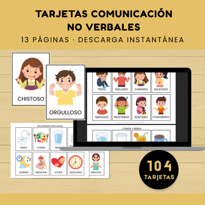104 Tarjetas de Comunicación con Imágenes Imprimibles, Ayuda Visual No Verbal, Apoyo del Habla para Aula, Autismo, Adultos Educación en Casa