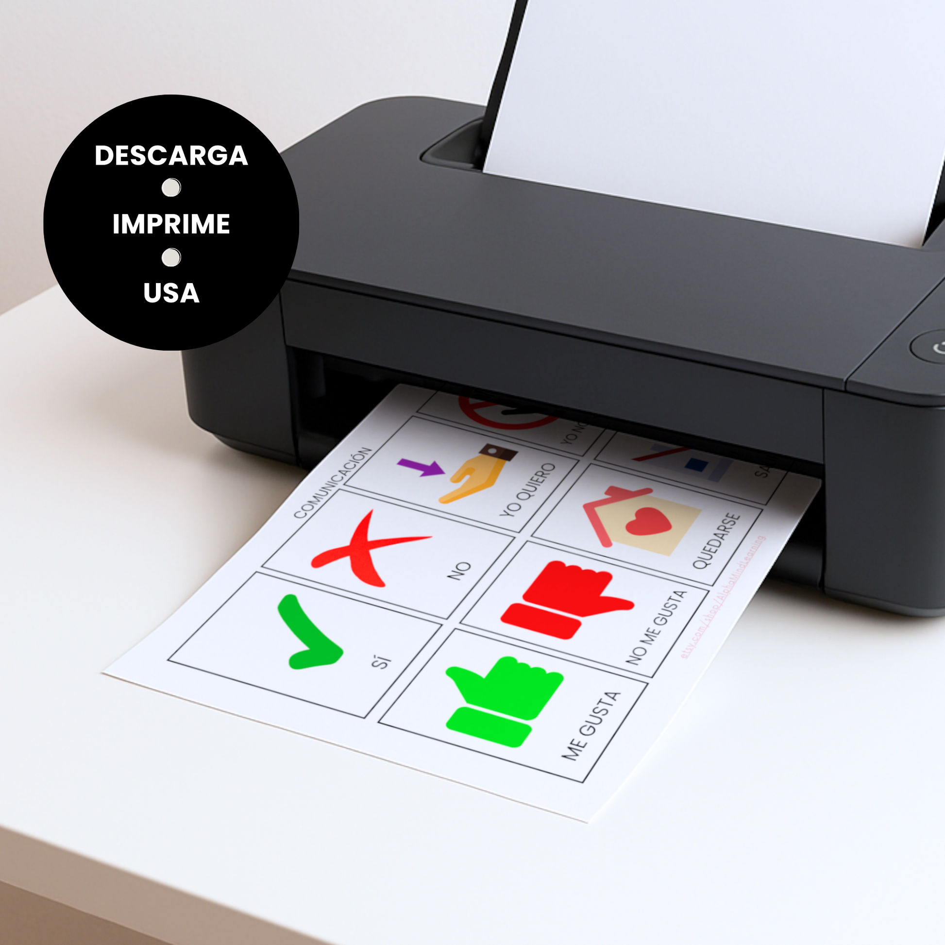 Imprime en casa, lamina para mayor durabilidad y coloca en tableros visuales de autismo, horarios de rutina visual o en un llavero para apoyo portátil.